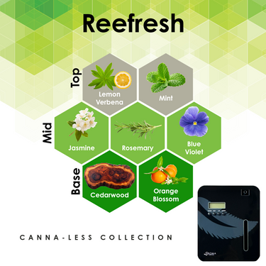 The Reefresh scent is a natural and clean cannabis odor remover that smells like flower blooms of citrus fruits. This weed odor eliminator does not contain CBD nor THC.